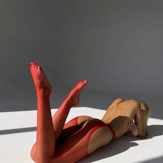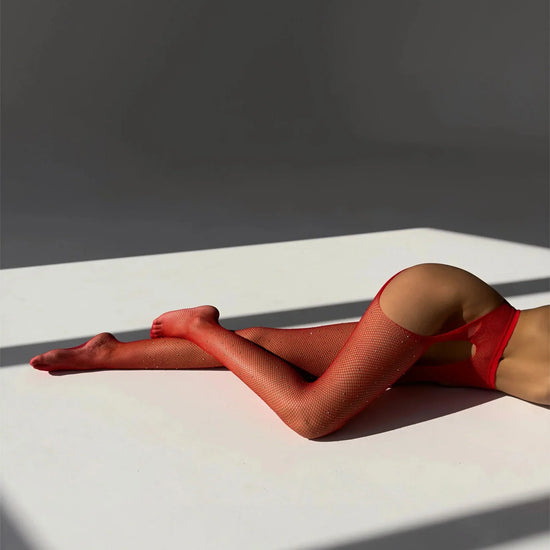 Introducing Noir TemptaCrafted with elegance and sophistication, the Noir Temptation Stockings are available in black, red, and white color options. Each pair features sparkling details that add a touch of glamour to any outfit.